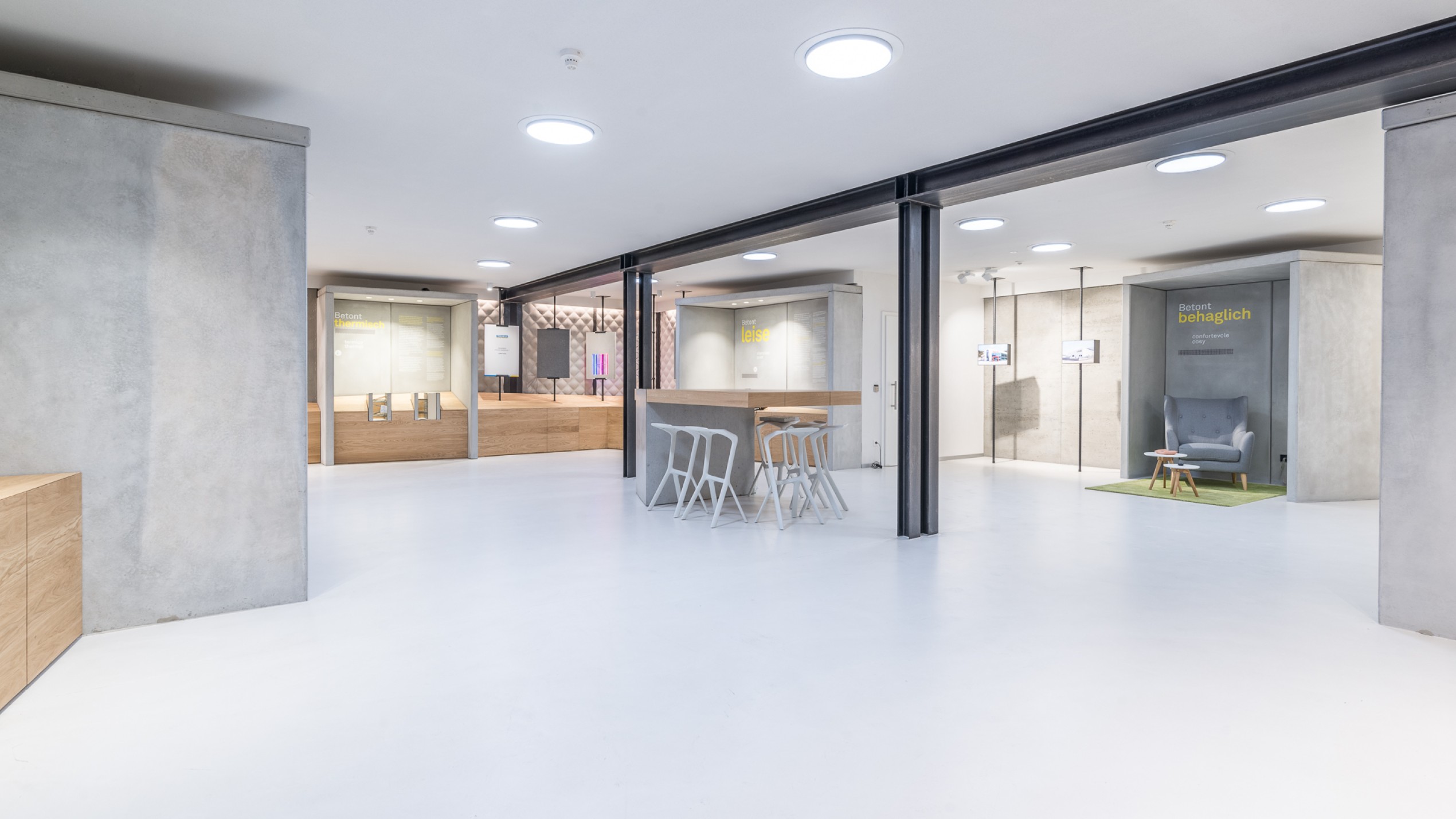 Ein Showroom sollte entwickelt werden, der die ästhetischen, funktionalen und technischen Qualitäten von Beton präsentiert und zugleich als multifunktionaler Kommunikationsraum dient.