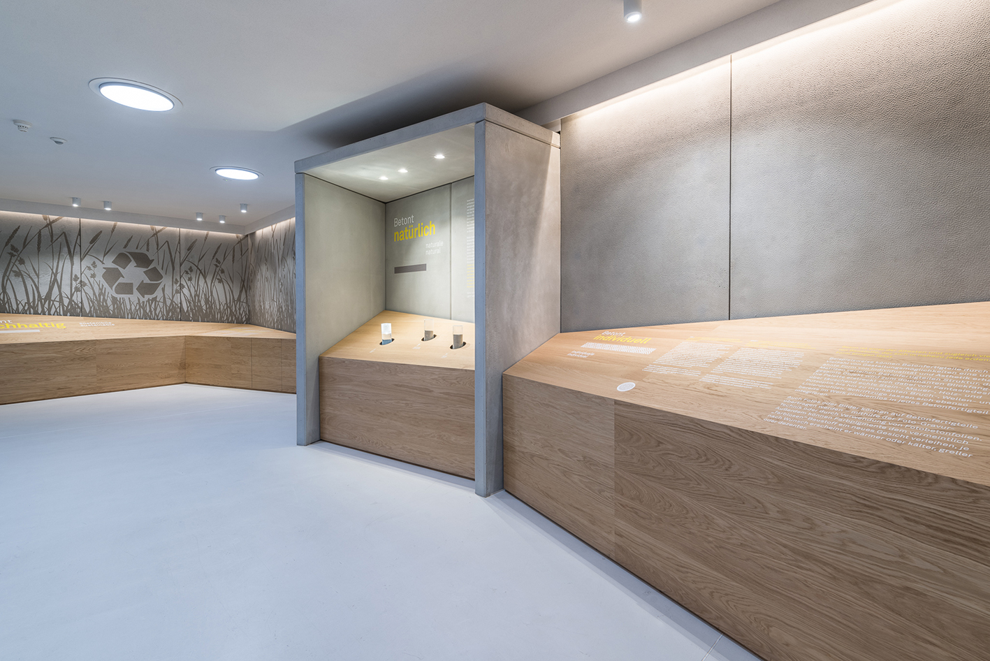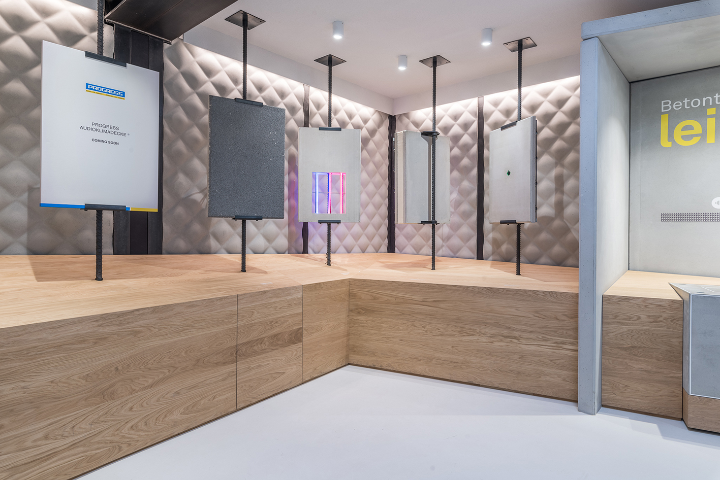 Der Showroom „Betonwelten“ der Progress AG inszeniert Beton als konstruktives und gestalterisches Material. Großzügige Raumproportionen, klare Achsbezüge und definierte Blickachsen führen den Besucher durch Zonen, in denen Beton in unterschiedlichen Oberflächenqualitäten und unter variierenden Tageslichtsituationen erfahrbar wird. Polygonal geformte Möbel aus Massivholz setzen bewusst einen warmen Kontrast zur geradlinigen Betonstruktur. Interaktive Stationen vermitteln technische und innovative Vorteile. Die modulare Raumplanung erlaubt eine flexible Nutzung – vom Kundengespräch bis zur Präsentationsveranstaltung – ohne die architektonische Sprache zu unterbrechen.