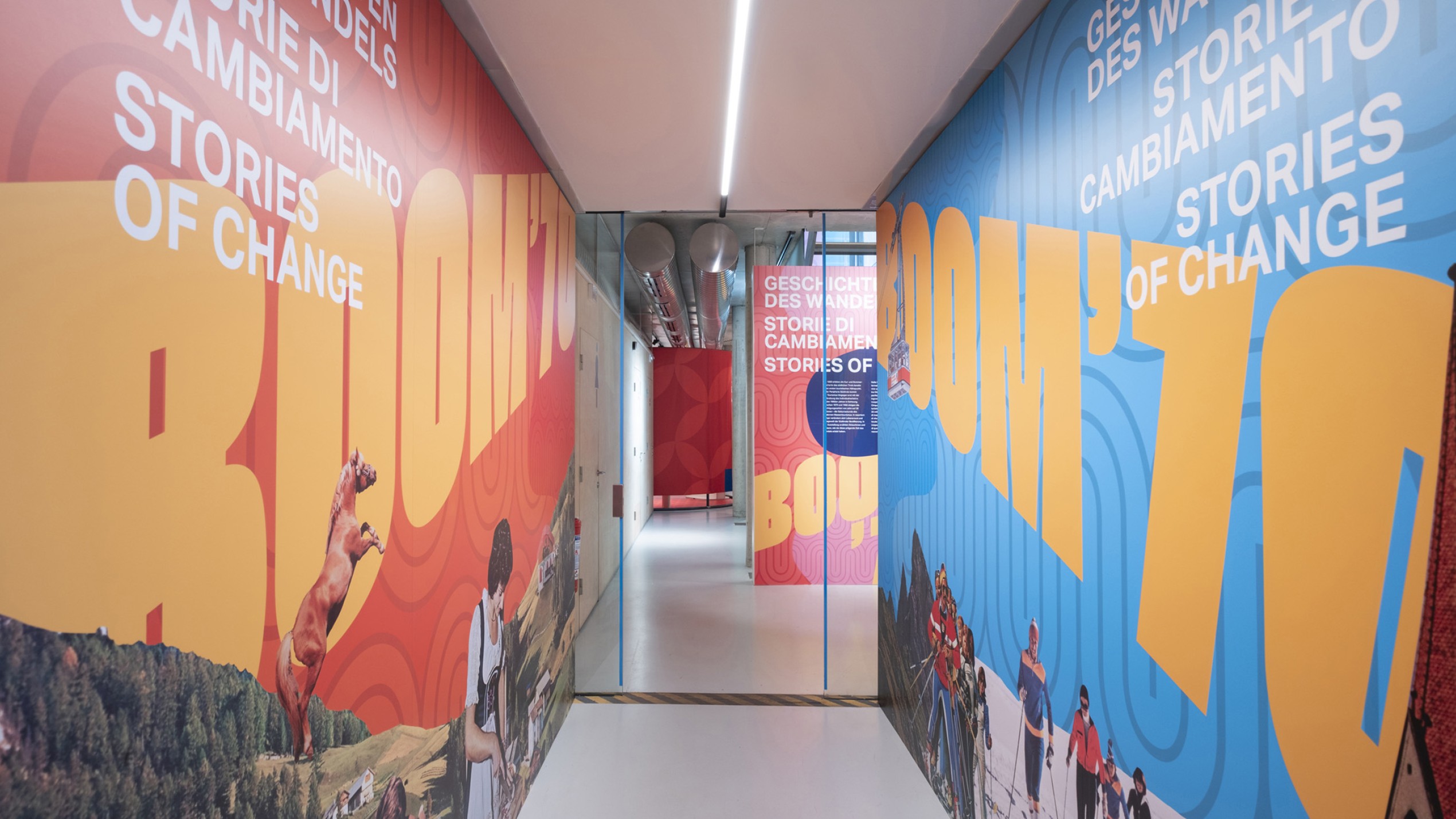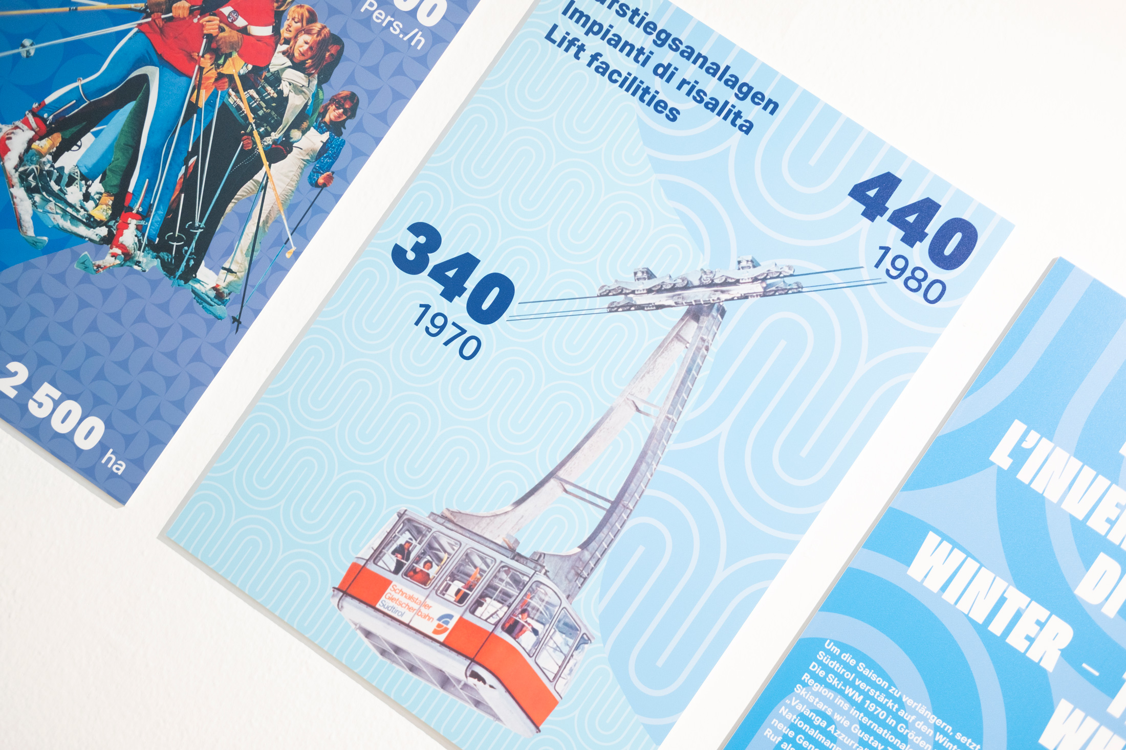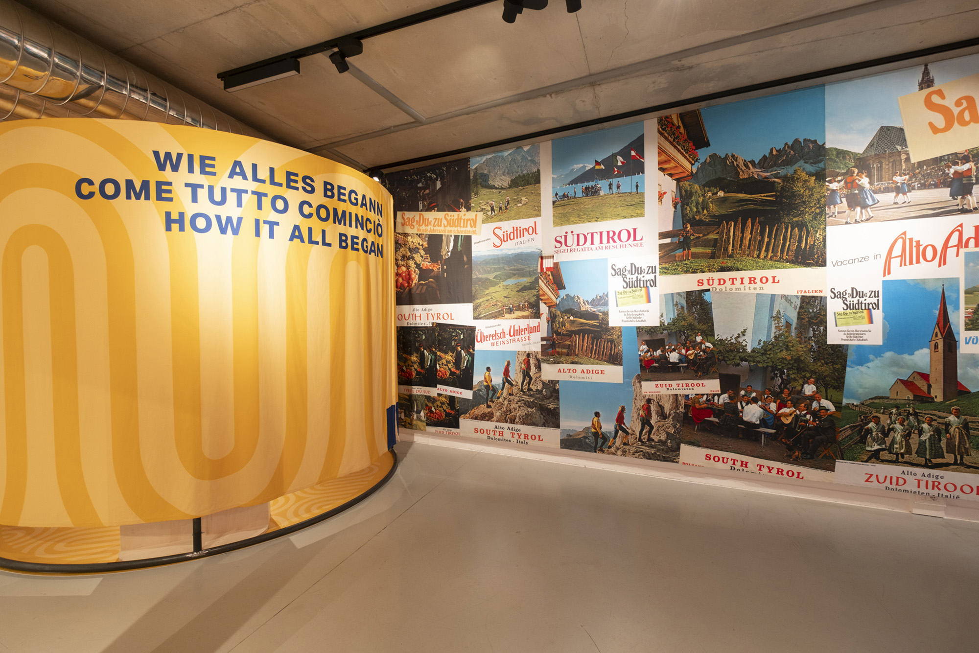 „Boom ’70“ inszeniert ein Jahrzehnt wie eine Partitur: mit den Crescendi des touristischen Erfolgs, leisen Zwischentönen aus einem sich rasant wandelnden Alltag und so mancher Disharmonie. In den 1970ern verwandelt sich Südtirol von einer verschlafenen Alpenregion in eine Bühne internationaler Gäste. Diesen Wandel erzählen wir anhand von sechs Themeninseln, die von Zeitzeugen-Aufnahmen und Interviews getragen werden. Eine leichte, helle Ausstellungsarchitektur gibt Raum für plakative 70er-Grafik, Original-Werbeplakate und Collagen, die Statistiken erlebbar machen.