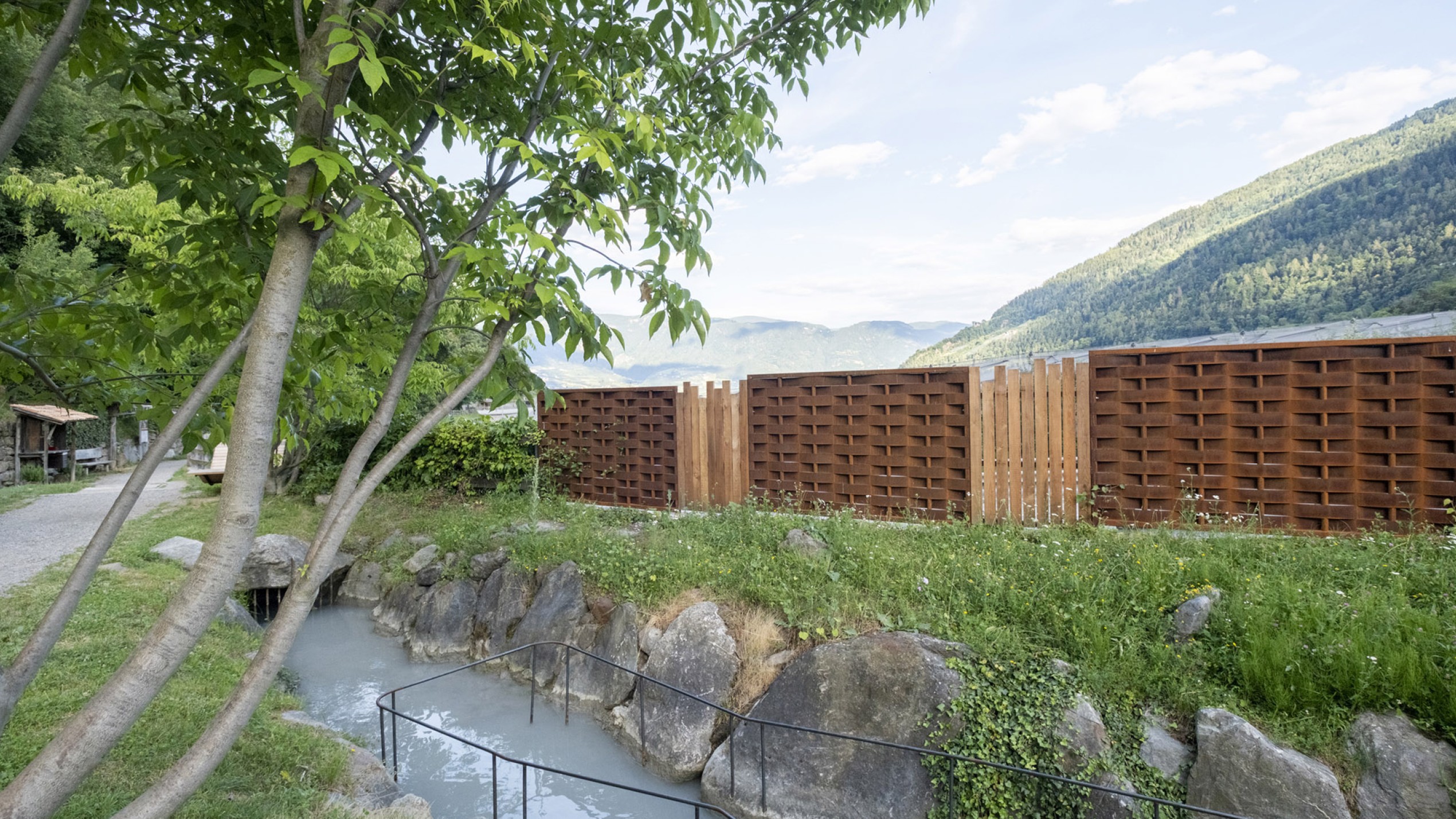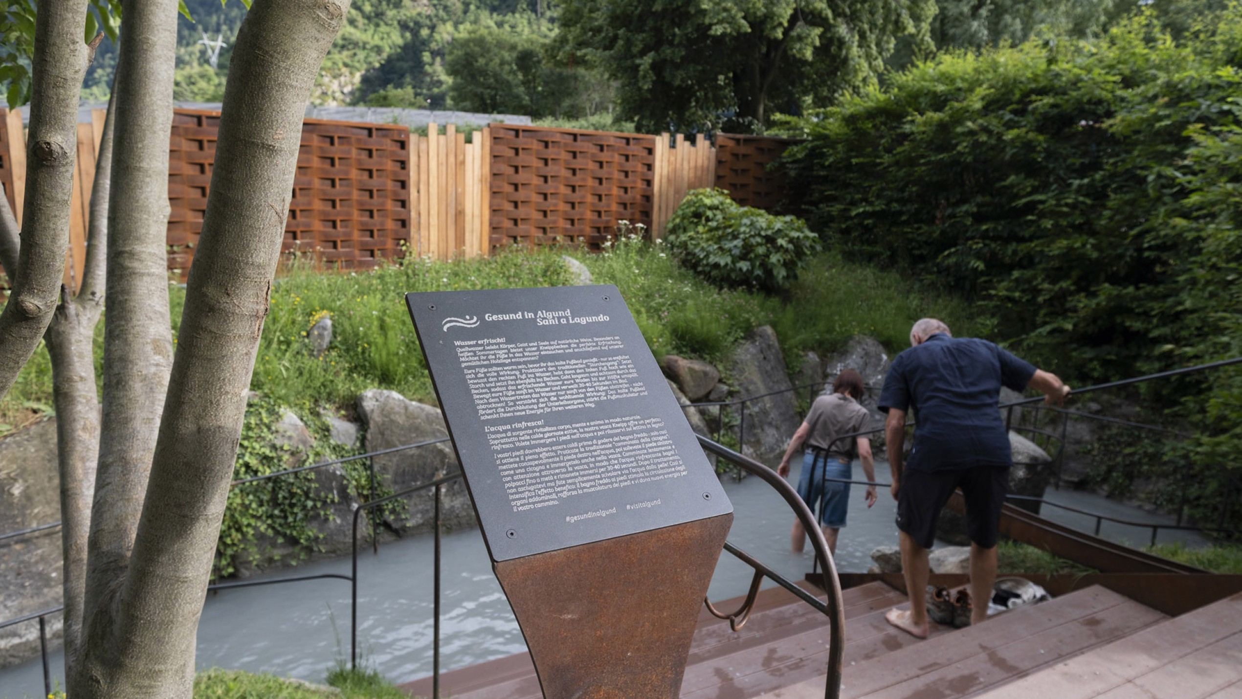 Zur internationalen Kneipp-Woche 2025 sollte am Beginn des Algunder Waalwegs eine Anlage entstehen, die sich harmonisch in die Landschaft integriert und Wasser, Erholung und Begegnung verbindet.