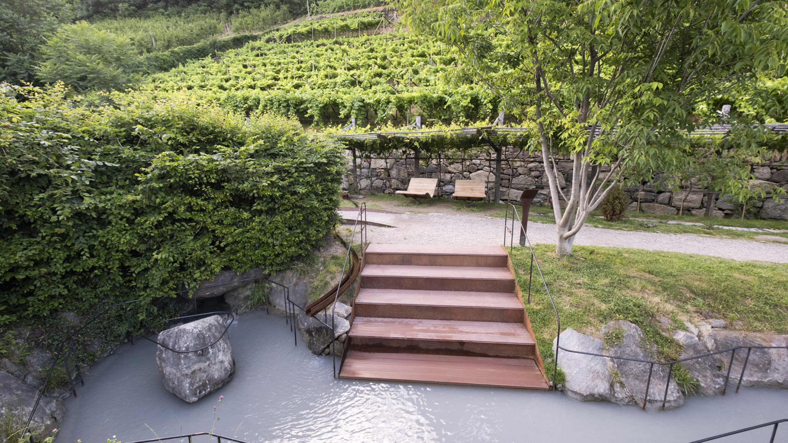 Eintauchen, durchatmen, verweilen: In die Weinberge eingebettet, wird Wasser zum Erlebnis.
