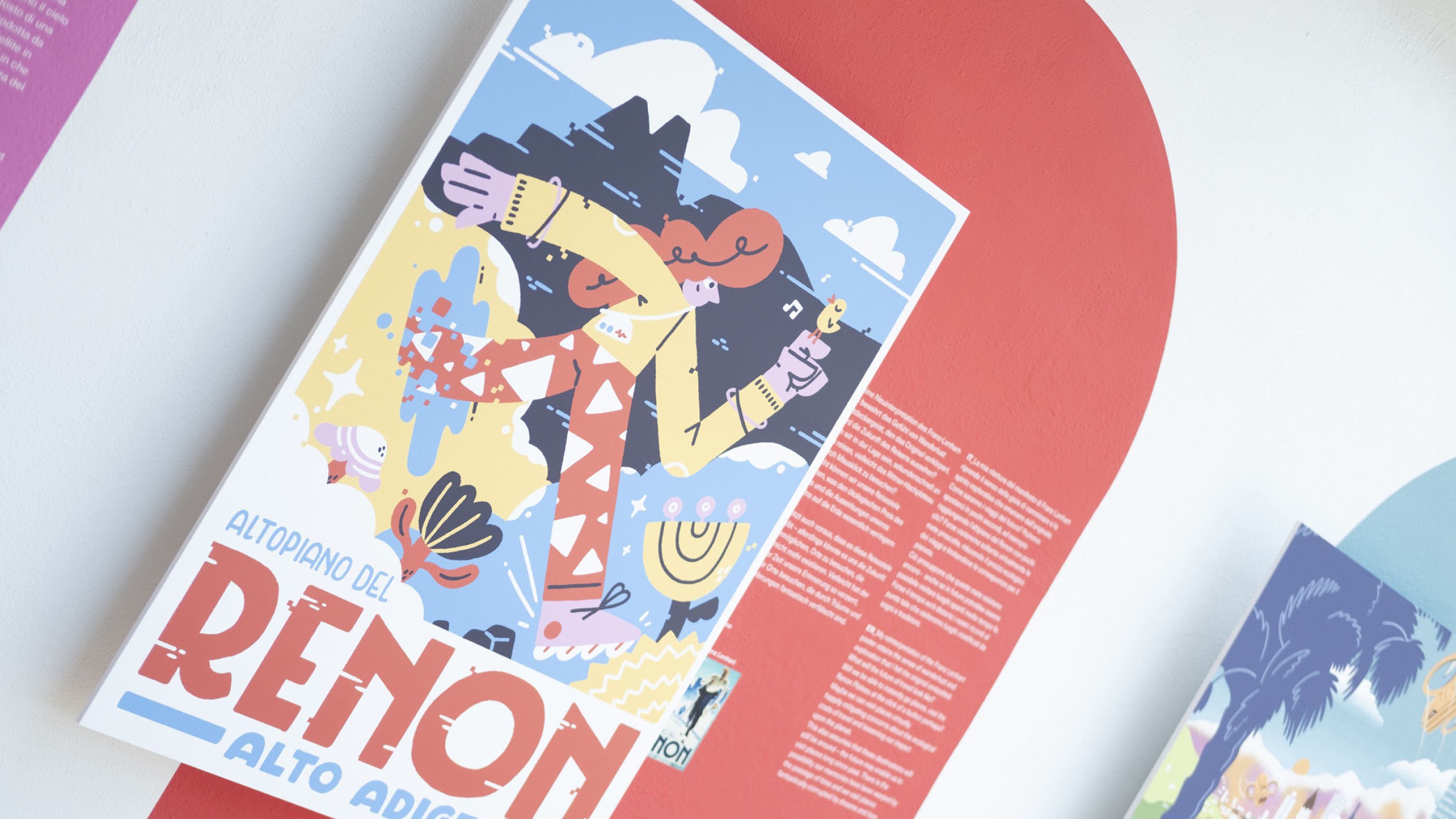 Neuinterpretation der historischen Tourismusplakate von Franz Lenhart durch zeitgenössische Illustratoren und eine farbenfrohe, zukunftsgewandte Grafik. Ergänzt durch KI-generierte Bildwelten, inspiriert von Texten zu möglichen Zukünften des Reisens.