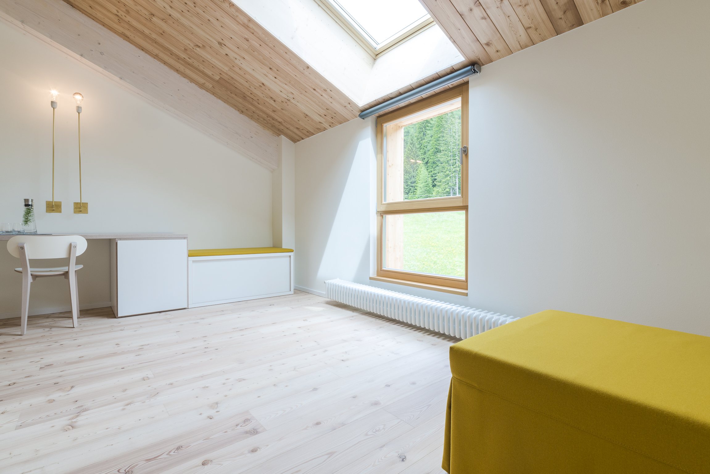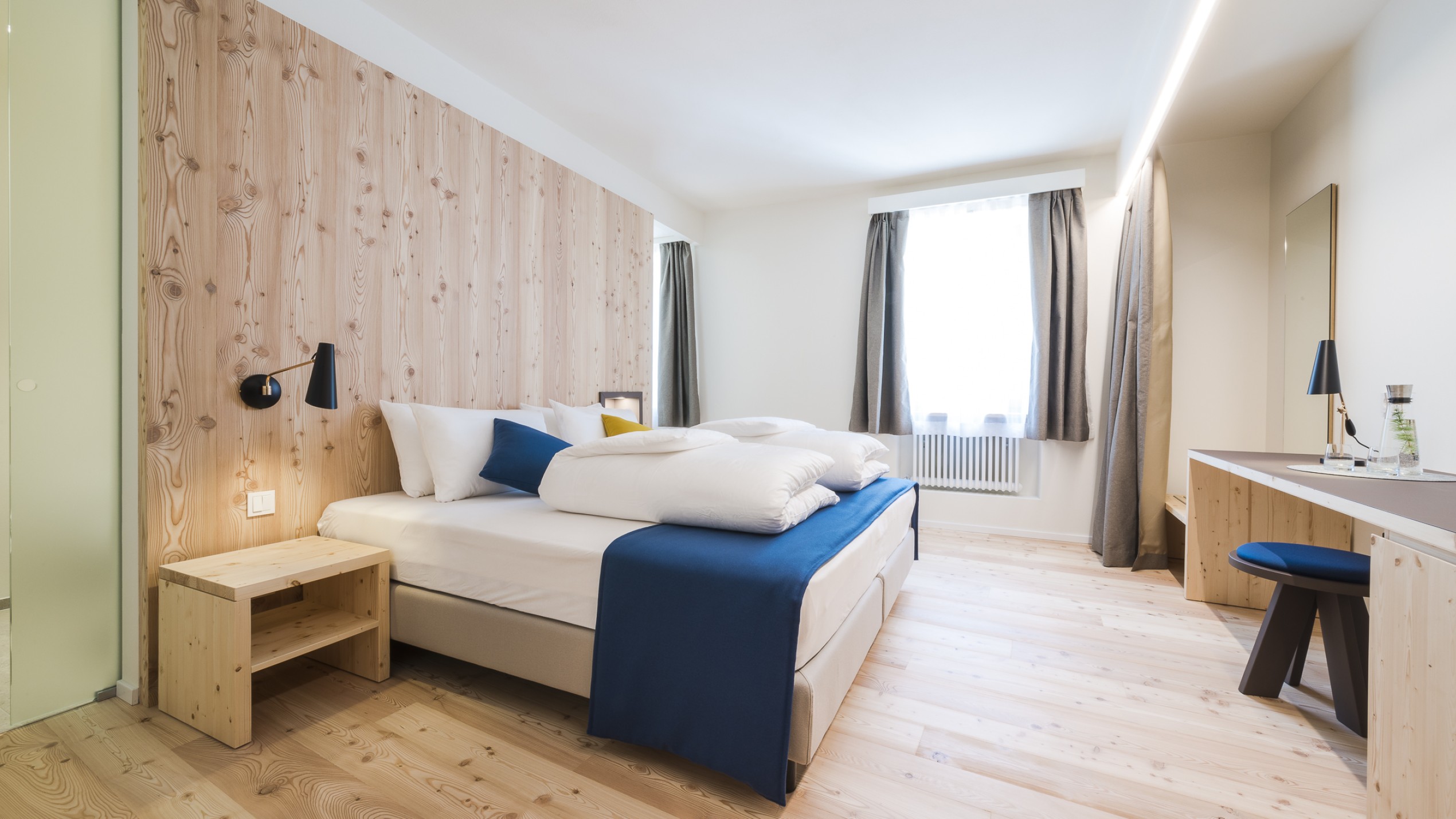Aus der sorgfältigen Renovierung und Erweiterung des „Zum Hirschen“ entstand ein Hotel, das bewusst entschleunigt. Die Inneneinrichtung übersetzt die historische Rolle als Ort des Rückzugs in ein zeitgenössisches Konzept von Ruhe, Achtsamkeit und digitalem Detox. Sanfte, warme Farbtöne und vorwiegend lokale Materialien schaffen eine authentische Haptik, während gezielt upgecycelte Elemente den nachhaltigen Anspruch unterstreichen. Die Zimmer sind reduziert gestaltet, frei von modischer Ablenkung und dennoch von hoher handwerklicher Qualität. Kein überflüssiges Dekor, sondern visuelle Klarheit als Einladung zum Innehalten. Das Zusammenspiel von Architektur, Interieur und Gastronomie – letztere mit streng lokalem Fokus – macht das „Zum Hirschen“ zu einem Ort, der nicht nur beherbergt, sondern erdet. Für dieses Konzept wurde das „Zum Hirschen“ mit zahlreichen Awards im In- & Ausland ausgezeichnet.