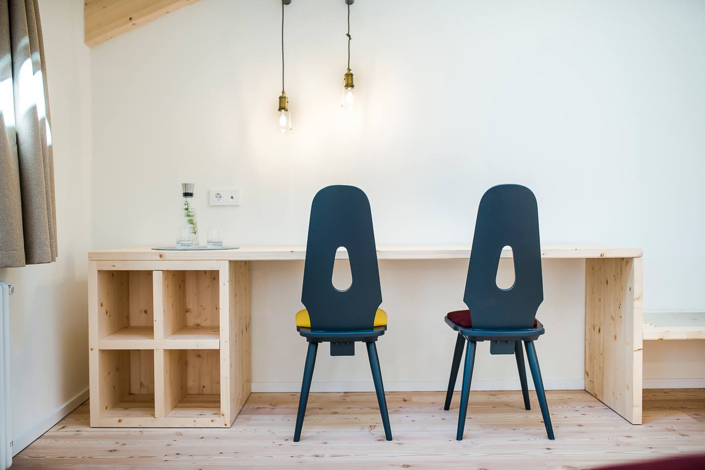 Inneneinrichtung als warmer Minimalismus: sorgfältige Materialauswahl, lokale Ressourcen, Upcycling-Elemente. Jeder Raum als bewusster Rückzugsort gestaltet – optischer Detox ohne Qualitätsverzicht.