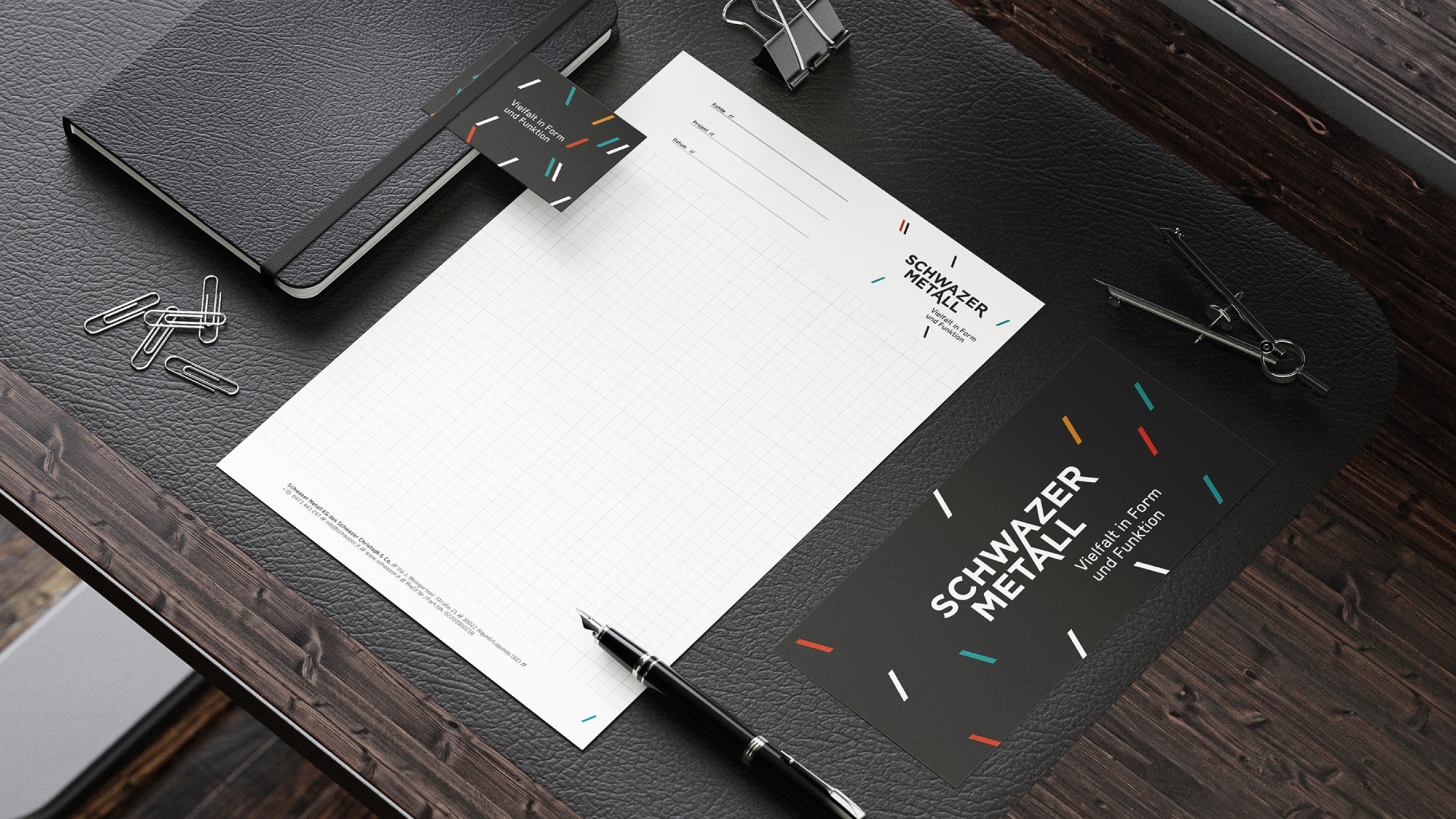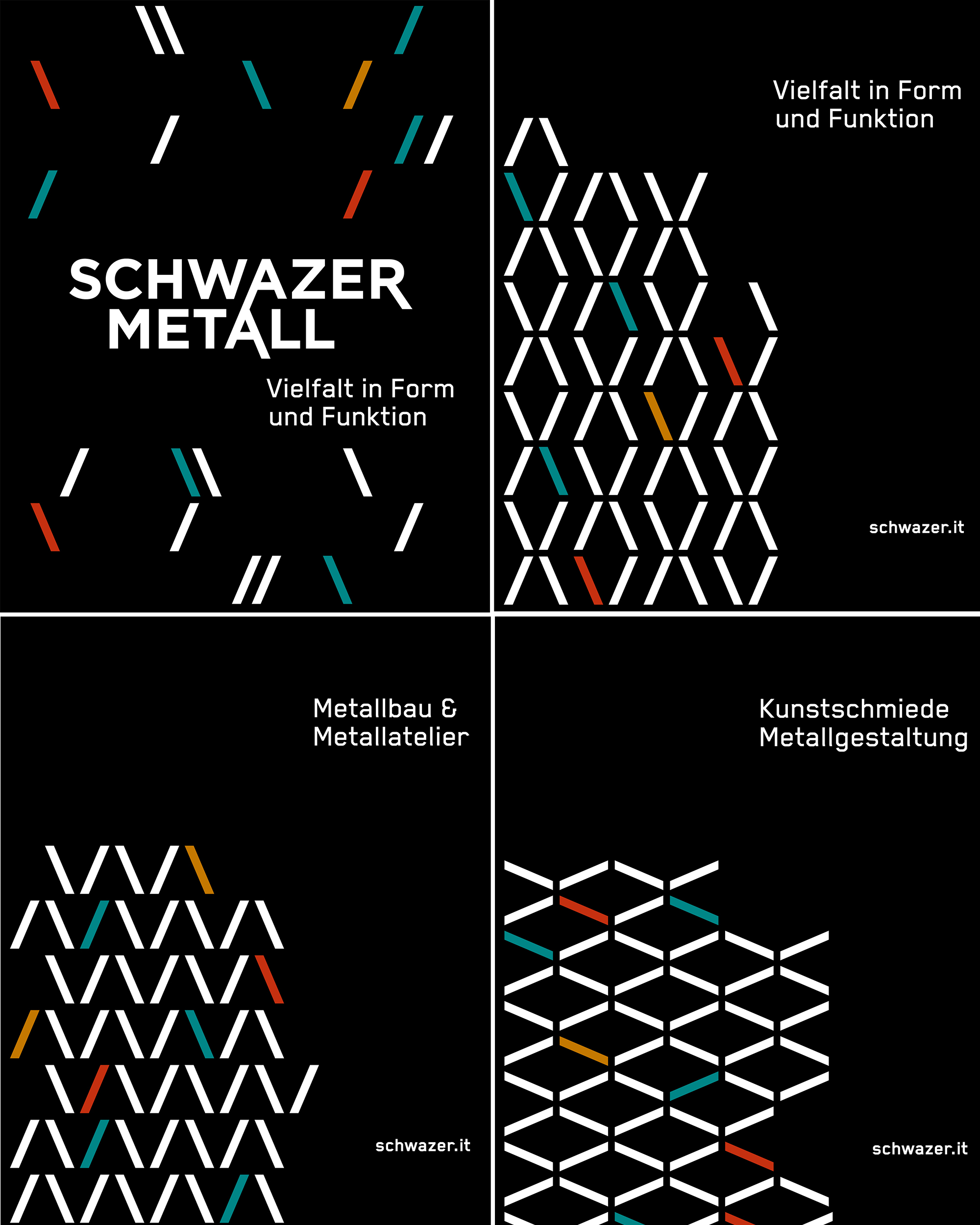 Der Marken-Relaunch von Schwazer Metall inszeniert eine klare Visual Identity, die technische Kompetenz, Materialvielfalt und Selbstbewusstsein visuell verbindet. Kern des neuen Logos ist ein reduziertes Wortmarken-Design, das durch schräge Striche typografisch moduliert wird – als semantisches Stilelement, das an Funkenspritzer beim Schweißen erinnert. Die Farbpalette holt ihren Ursprung aus Metallen: Schwarzblech, Grünspan, Kupfer, Messing, Stahl – sie bilden eine authentische Material-Referenz. Der Claim „Vielfalt in Form und Funktion“ unterstreicht strategisch die Markenpositionierung – technisch, prägnant, lesbar. In der Corporate Identity findet sich die neue Brand Language wieder: Die Schrägstriche fungieren als Layout-Pattern und schaffen eine wiedererkennbare Gestaltbarkeit für Touchpoints von Visitenkarte bis Fahrzeugbeklebung. Die Wort-Bild-Marke kommuniziert klar, bleibt adaptiv und stärkt den Wiedererkennungswert im regionalen wie überregionalen Markt.